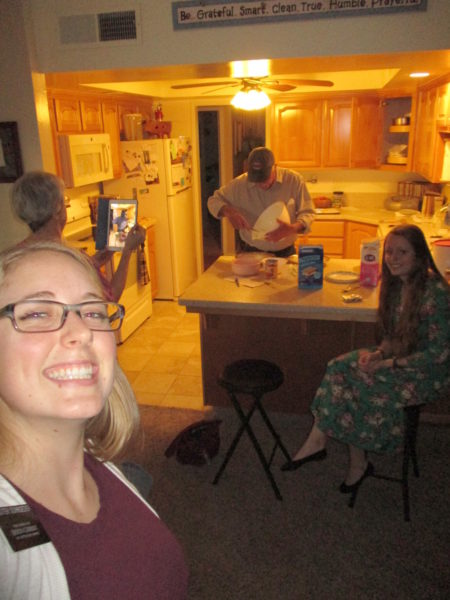 We then tried to go see a few people in the ward, but we got rejected, so we went to Diana’s house and begged her to let us in. We were there until dinner watching her and Fallgatter make pie. It was quite entertaining and no one was murdered, although there were a few close calls. We then had Thanksgiving at a member’s daughter’s house. We again felt like grasshoppers because they wouldn’t let us help clean up either. It was a great day, but I developed an eye twitch that lasted for a few days from the stress of finding somewhere to be. It’s hard when you want to be a good missionary, but you aren’t sure how.